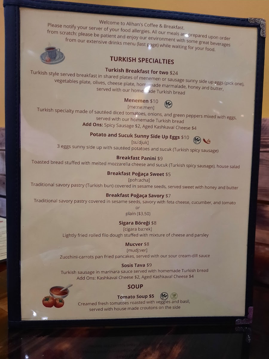 Alihan's Coffee and Breakfast Menu